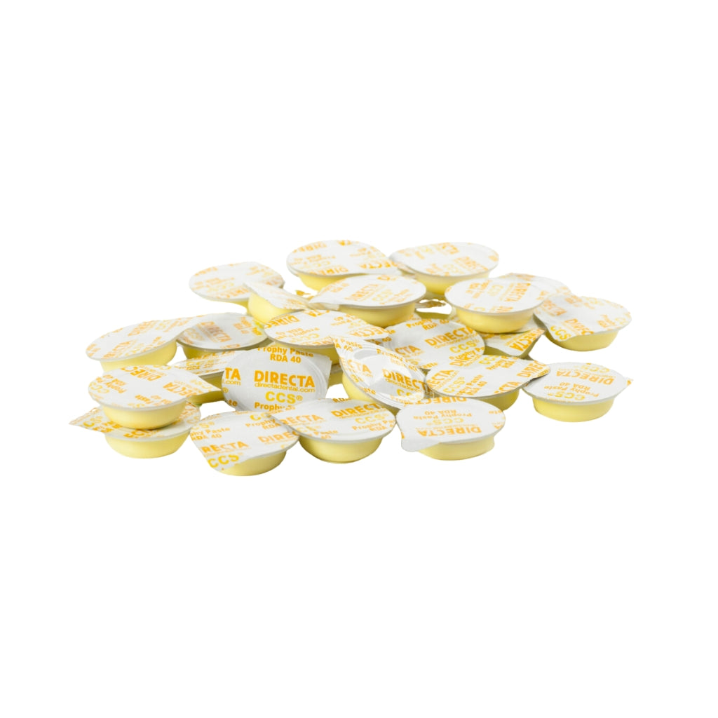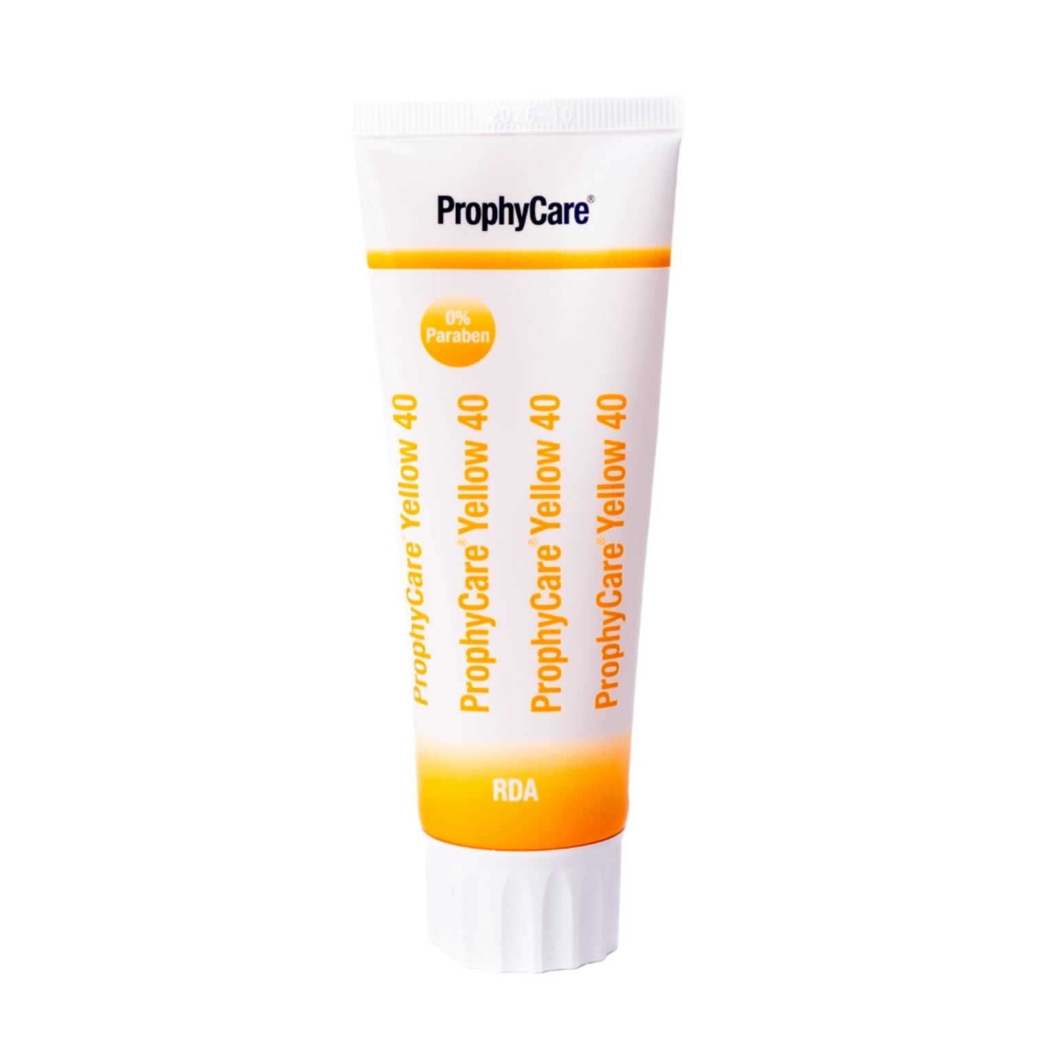 Packed in easy to dispense, tubes and single dose disposable cups, colour coded for easy identification. During storage, the paste stays homogeneous and does not dry out, liquify or separate. ProphyCare Yellow 40 is also available as paraben free.