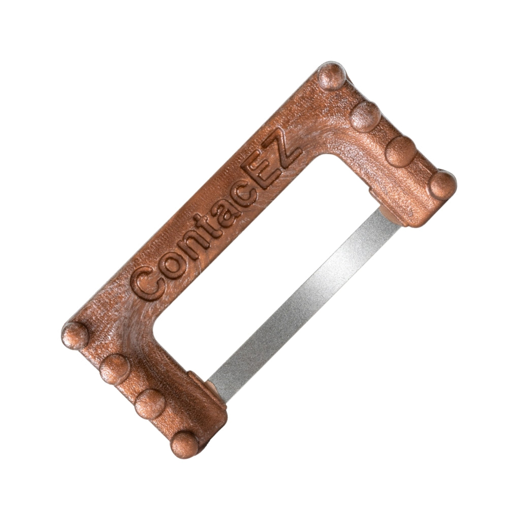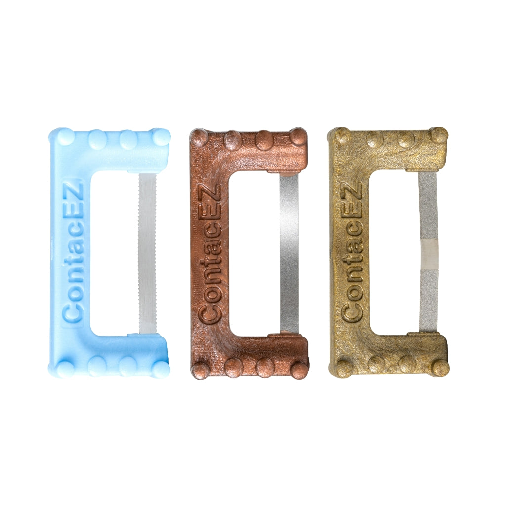 Bande dentelée double face ultra fine, sans diamants, permettant d'atteindre et d'éliminer facilement les saillies sous-gingivales sans risque d'affecter la zone de contact. À utiliser lorsque des saillies saillantes sont détectées.
