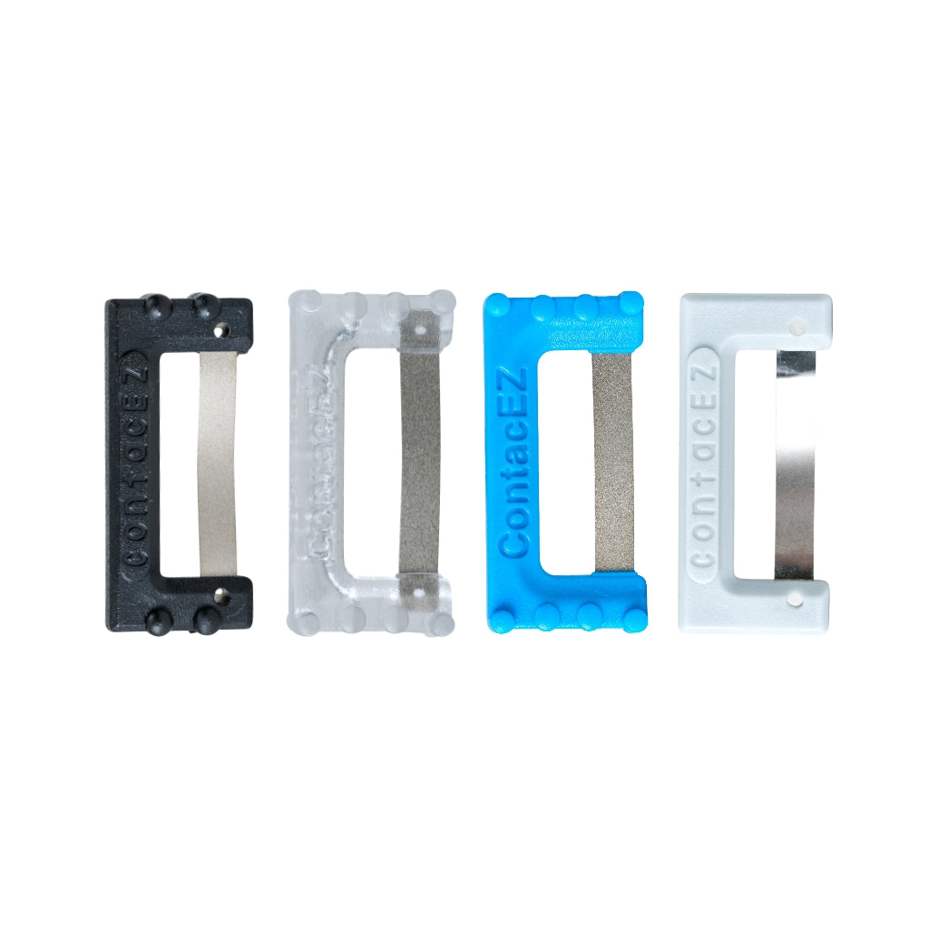 The ContacEZ LAB Strips are designed to reduce the frustrations inherent in coordinating proximal contact restoration of crowns between dental clinics and dental labs, creating a consistent procedure that reduces remakes and rebakes. For laboratory use only.
