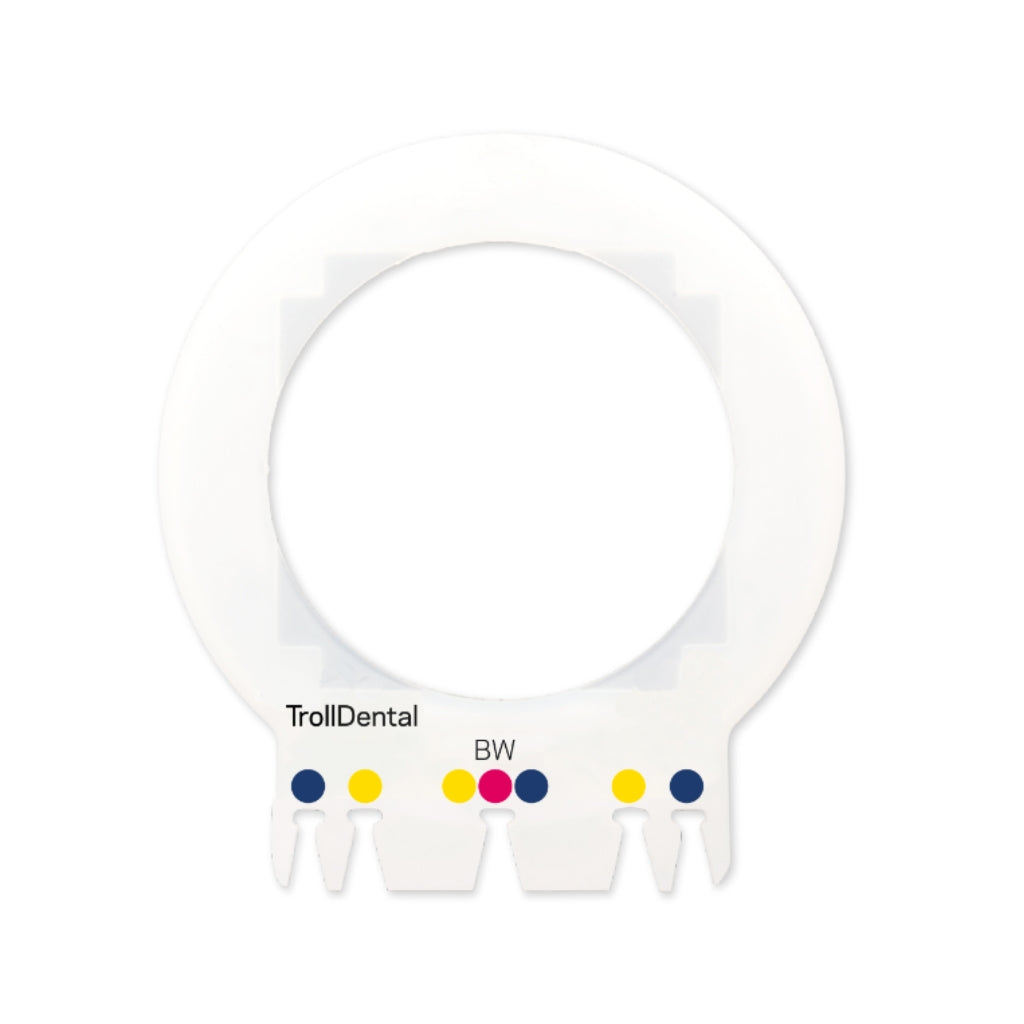 TrollByte Kimera is an aiming system for intraoral X-ray and is compatible with most common sensor brands on the market. The one-piece design requires no assembly, making it easy to use. With only 3 different holders you can take any type of intraoral X-ray and the holders are colour coded for easy identification. The stable arm makes it easy to position the sensor with great accuracy and to keep the holder in the correct position during the X-ray imaging. With the soft and flexible claw, it is easy to fine-tune the fit to your sensor. This ensures accurate placement of the sensor in the patient's mouth. The aiming ring keeps track of sensor position and minimizes retakes which makes it safe to use and saves time.